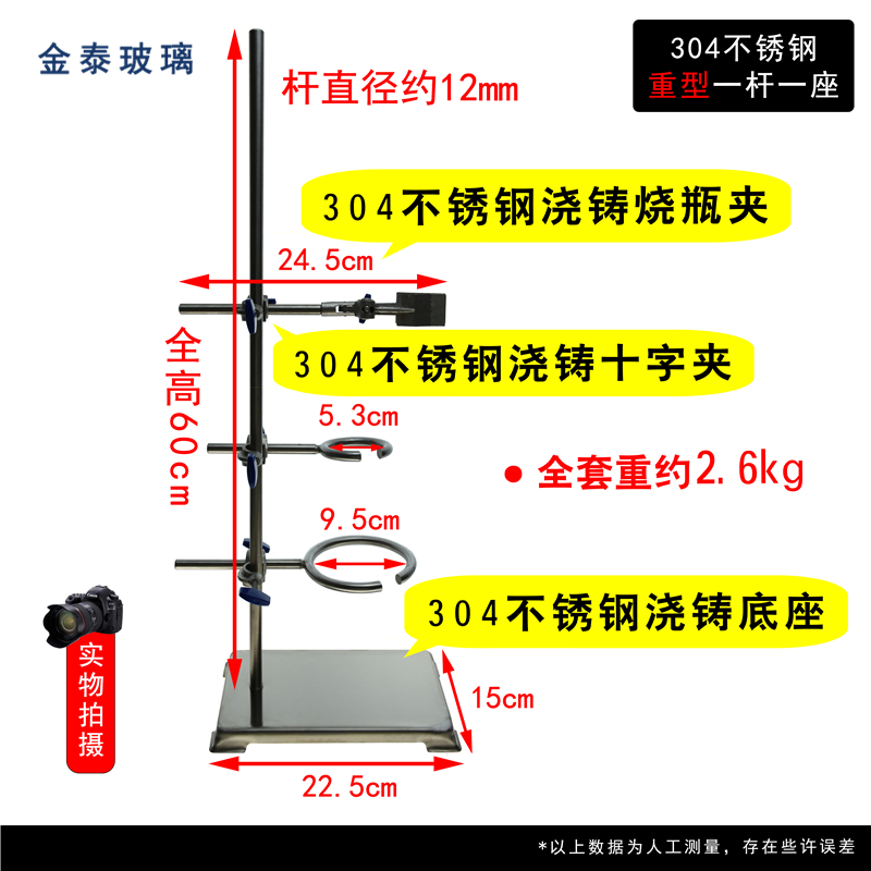微型标准铁架台/304重型不锈钢铁架台全套含加厚底座十字夹铁圈