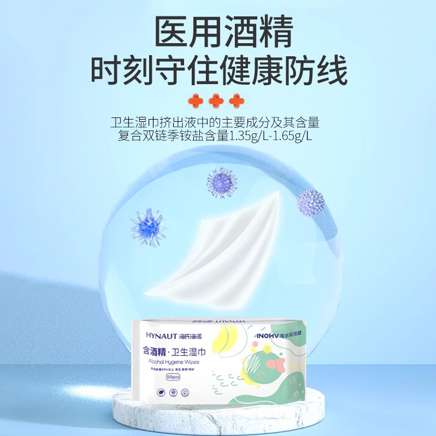 海氏海诺医用酒精卫生湿巾杀菌清洁消毒免洗手一次性家用湿纸巾