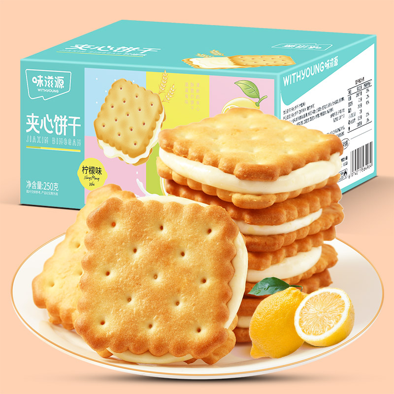柠檬味夹心饼干薄脆酸甜味休闲解馋零食网红爆款独立小包浓郁美味