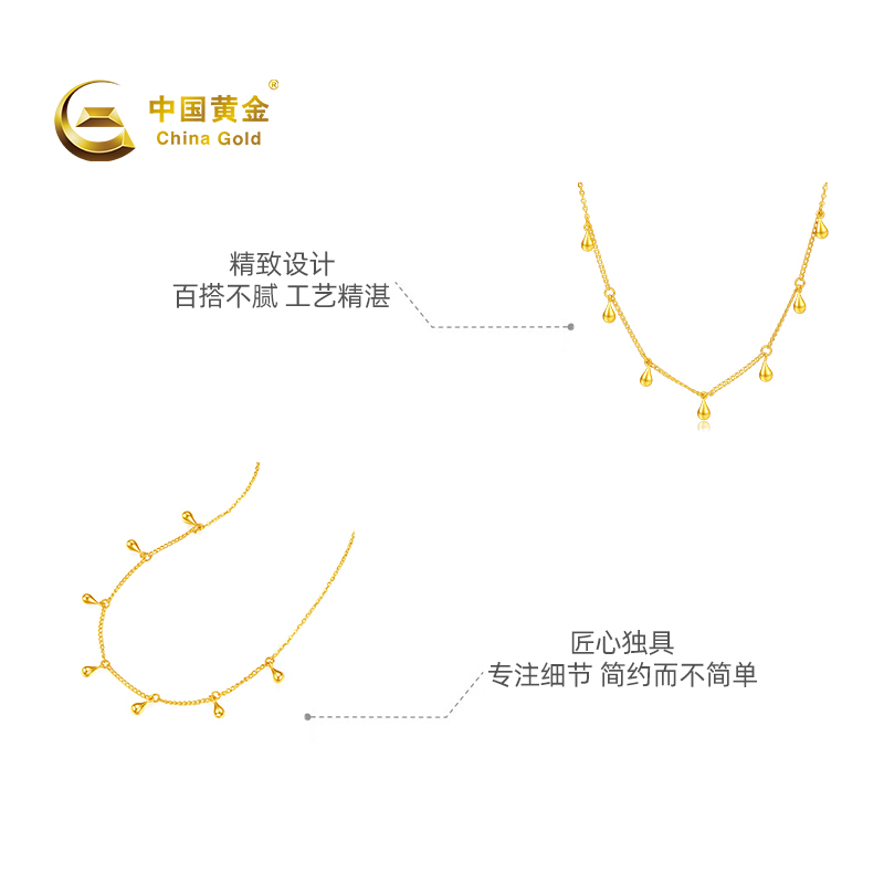 【中国黄金官方店】足金5G水滴套链气质简约百搭新品首饰黄金送礼
