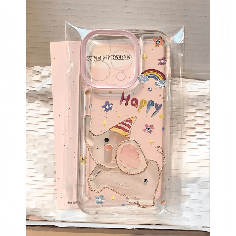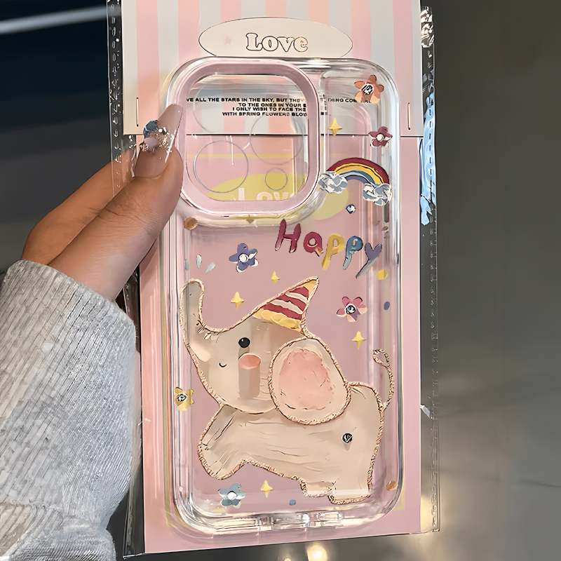 快乐小象适用16pro手机壳iPhone15promax新款13华为mate60pr荣耀200防摔12小米14透明vivos20全包oppo软壳k70