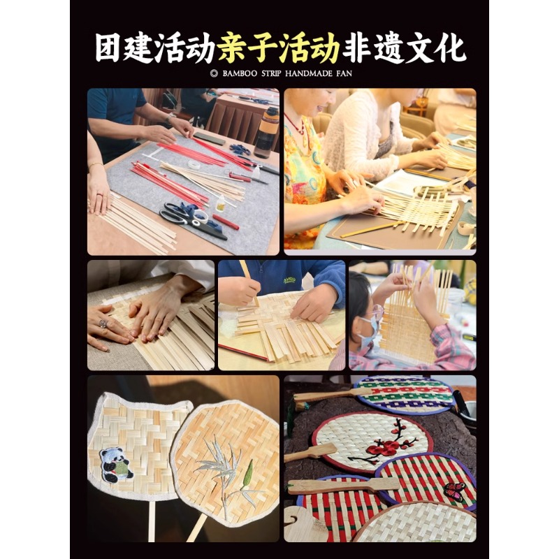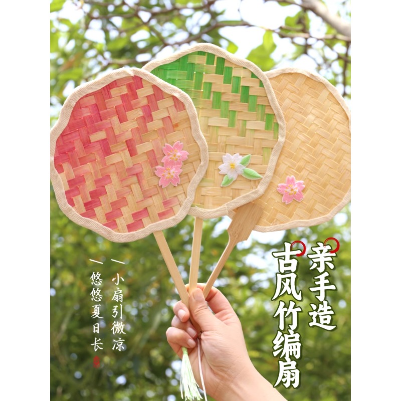 非遗手工竹编扇子diy团扇儿童蒲扇材料包亲子制作编织竹篾手作