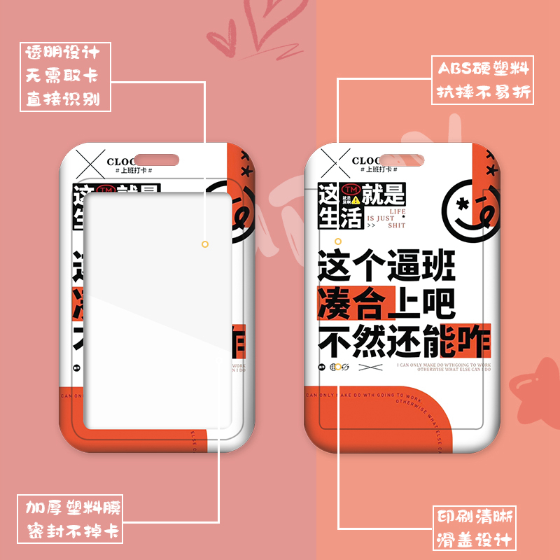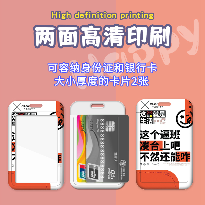潮文学滑盖卡套饭卡公交卡身份证件保护套门禁校园卡厂牌打工人防丢ins风