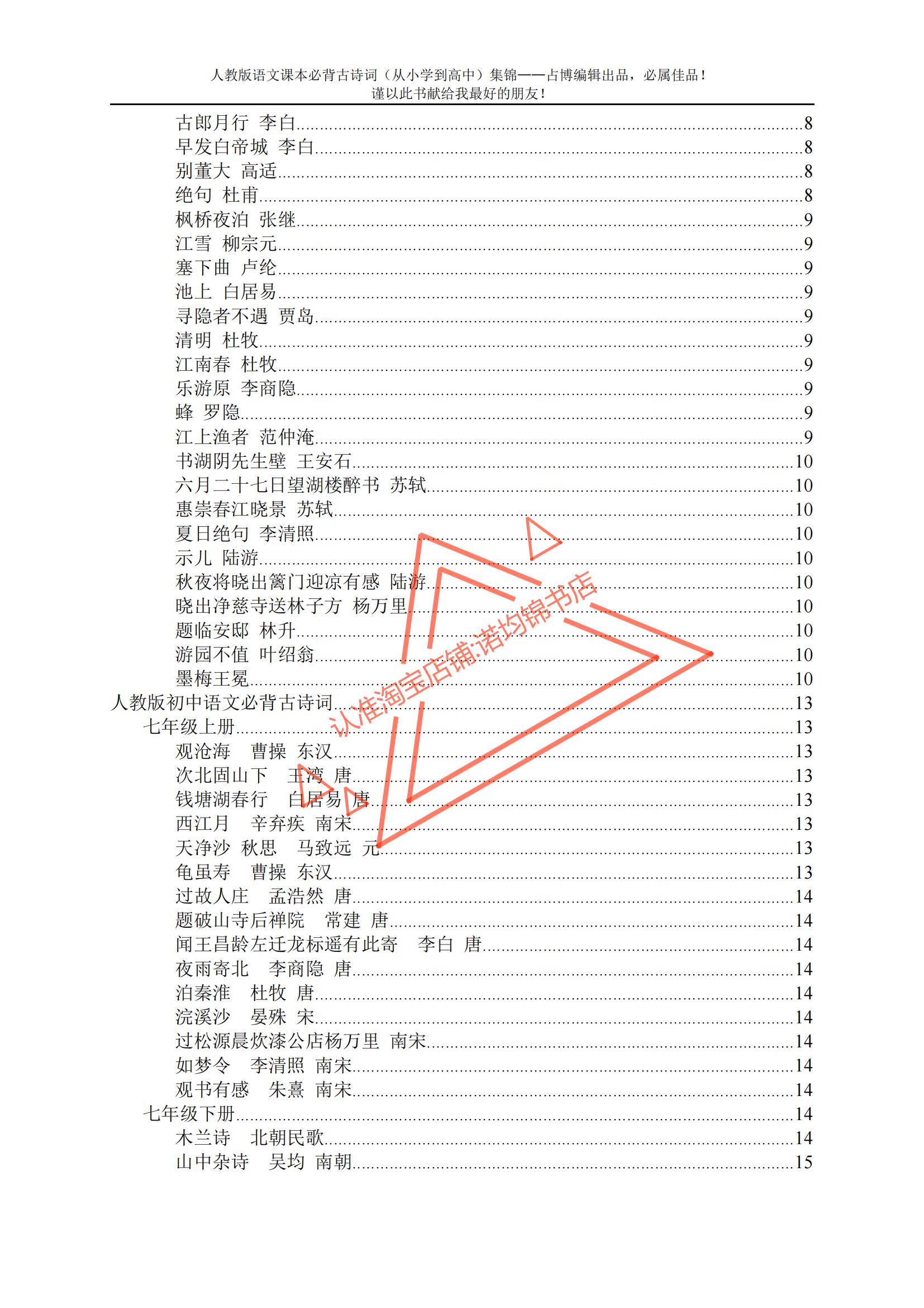 人教版语文必背古诗词及文言文集锦纸质(小学、初中、高中一本全)