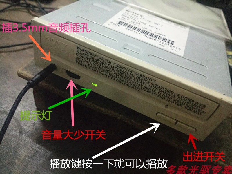 SONY索尼CD-ROM光驱带放键功能听歌开心3.5mm音频插孔并口IDE接口