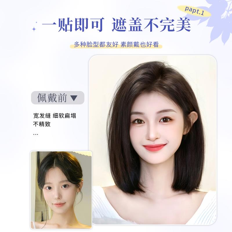 无需发卡假发片无痕款遮头顶魔术发缝贴自然蓬松高颅顶真发补发