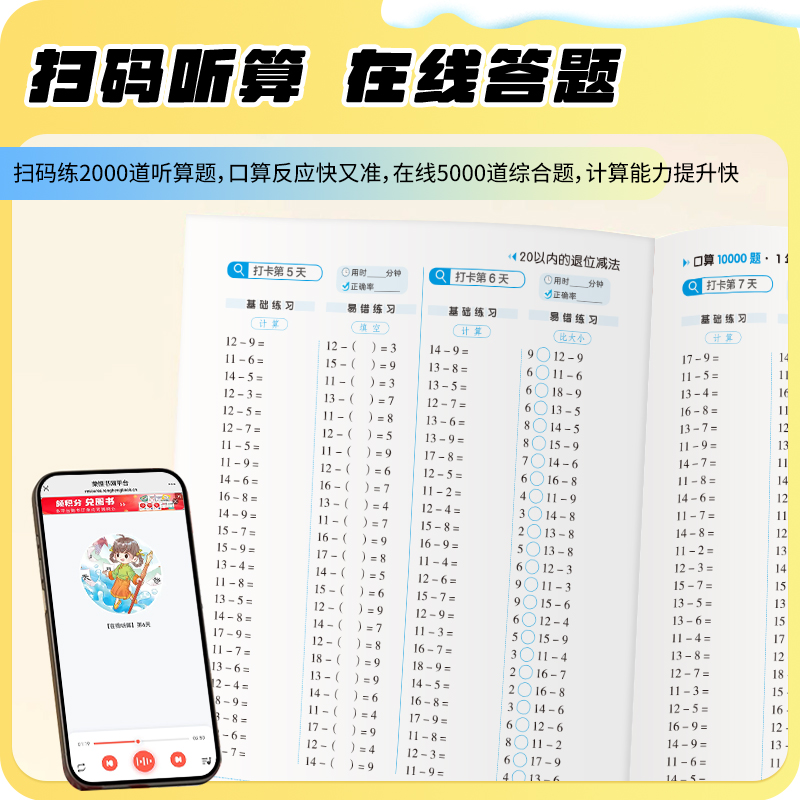 荣恒小学口算10000题新版1-6年级上下册每天6分钟打卡一日一练每日同步课本专攻口算题打好基础海量题库巩固提升Y计算练习训练人教