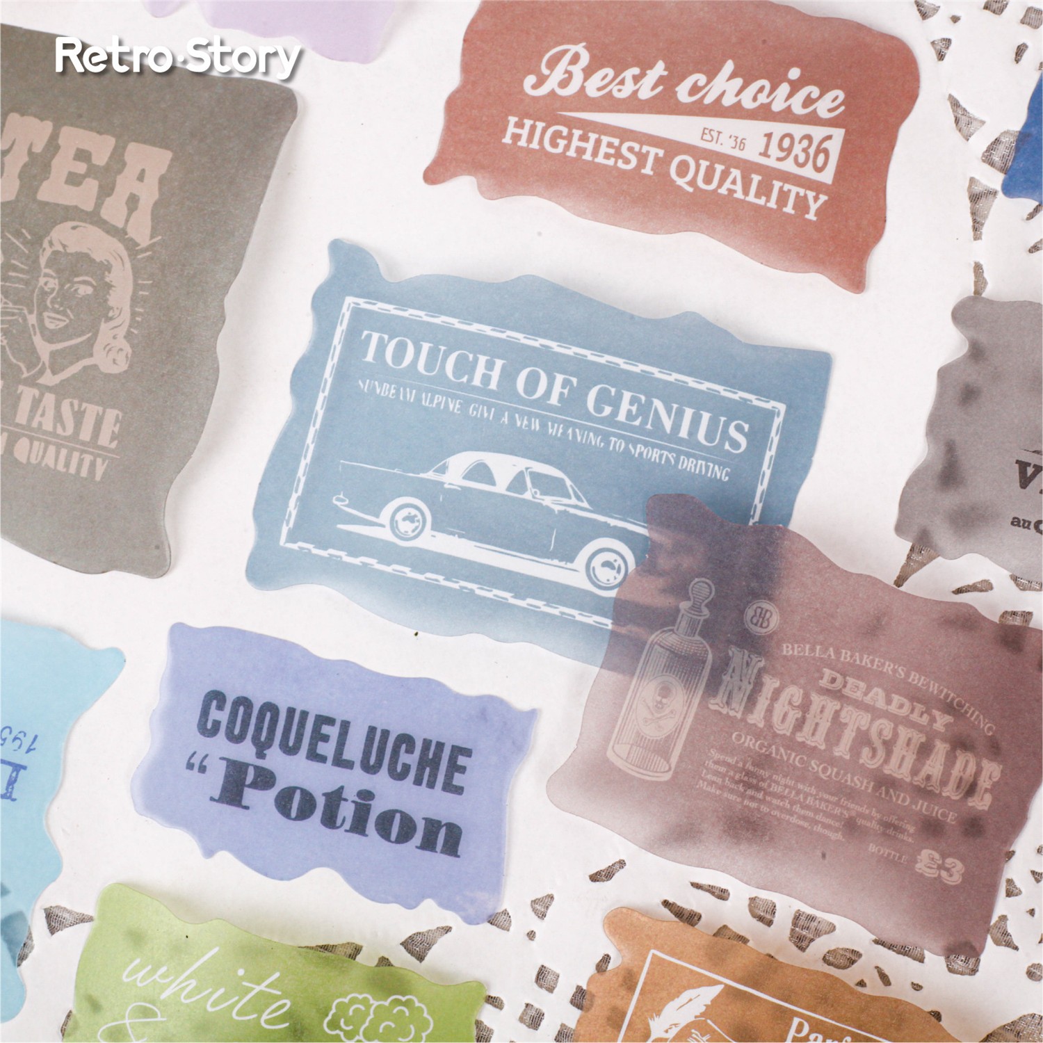清浊系列硫酸纸不干胶贴纸包30张 复古英文主题手账DIY装饰素材贴