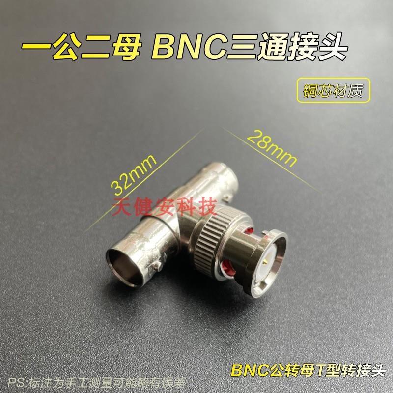 一公二母BNC三通监控视频信号接头1进2出Q9一分二T型插头3通铜芯