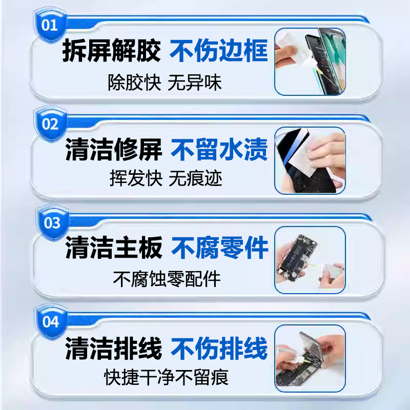 苹果后盖除胶剂屏幕去胶水手机拆屏解胶剂屏幕电池维修除胶剂手机维修除胶剂外屏幕残胶手机芯片电池胶去除剂