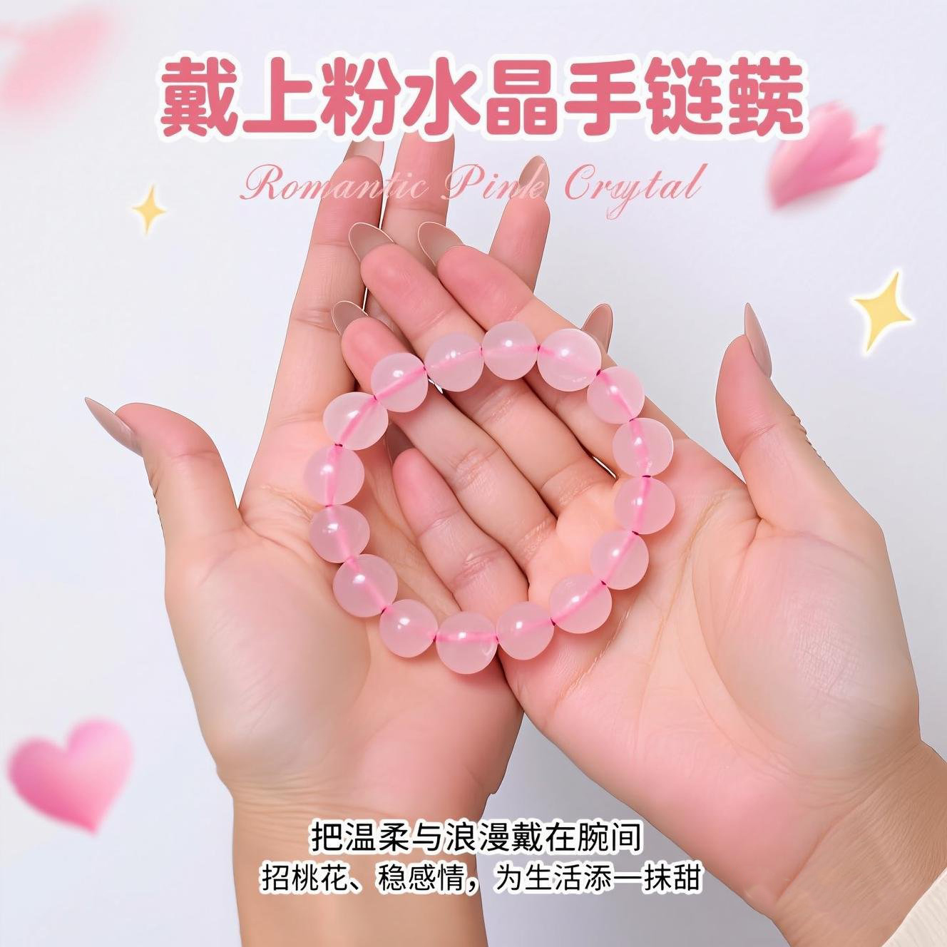 天然粉水晶手串女生招桃花粉晶手链马粉闺蜜女友礼物简约小众珠串