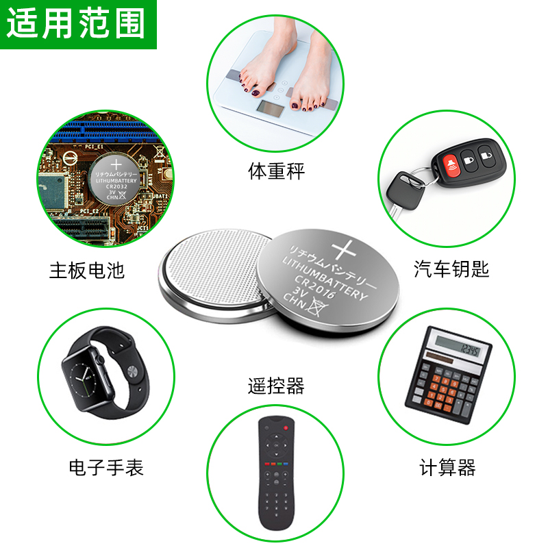 CR2016纽扣电池3V锂电子手表主板适用丰田奔驰凯美瑞铁将军比亚迪摩托车汽车遥控器钥匙体重秤电子秤大容量