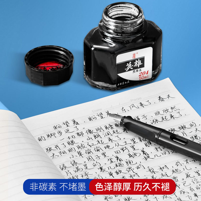英雄钢笔墨水红色教师批改专用红钢笔水高级非碳素不堵笔老师红笔改作业深红大瓶红墨水钢笔用书法刚笔红墨汁