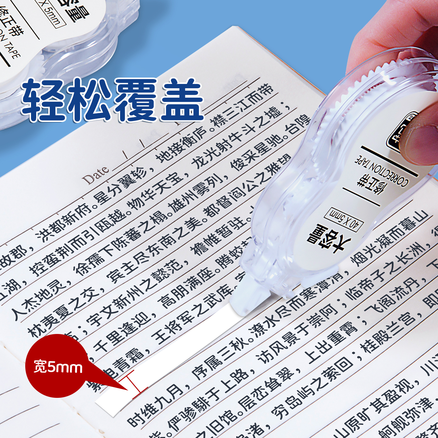 修正带学生用涂改带顺滑不断带初中生大容量休正改正带小学生专用文具简约款无痕去字改字改错带多功能修改带