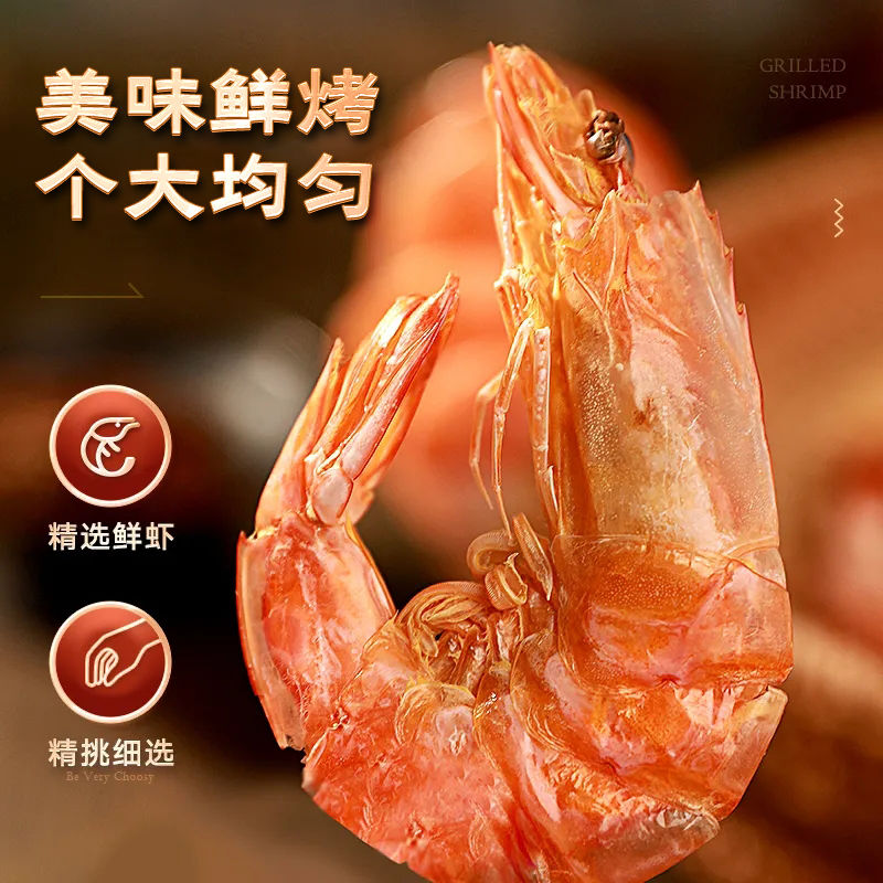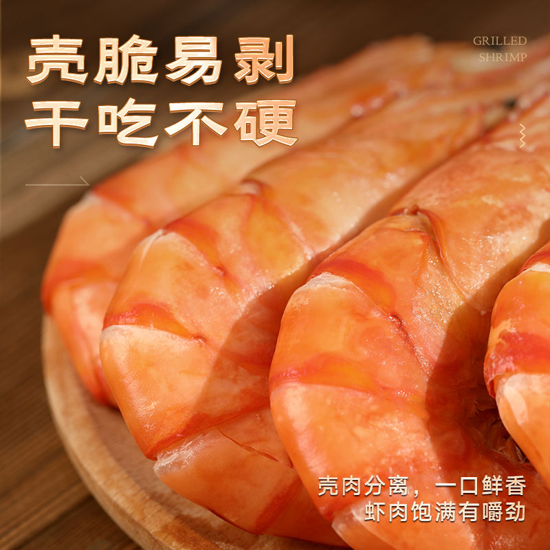 烤虾干开袋即食大号九节脆虾肉仁炭烤海鲜干减货脂孕妇熟零食小吃