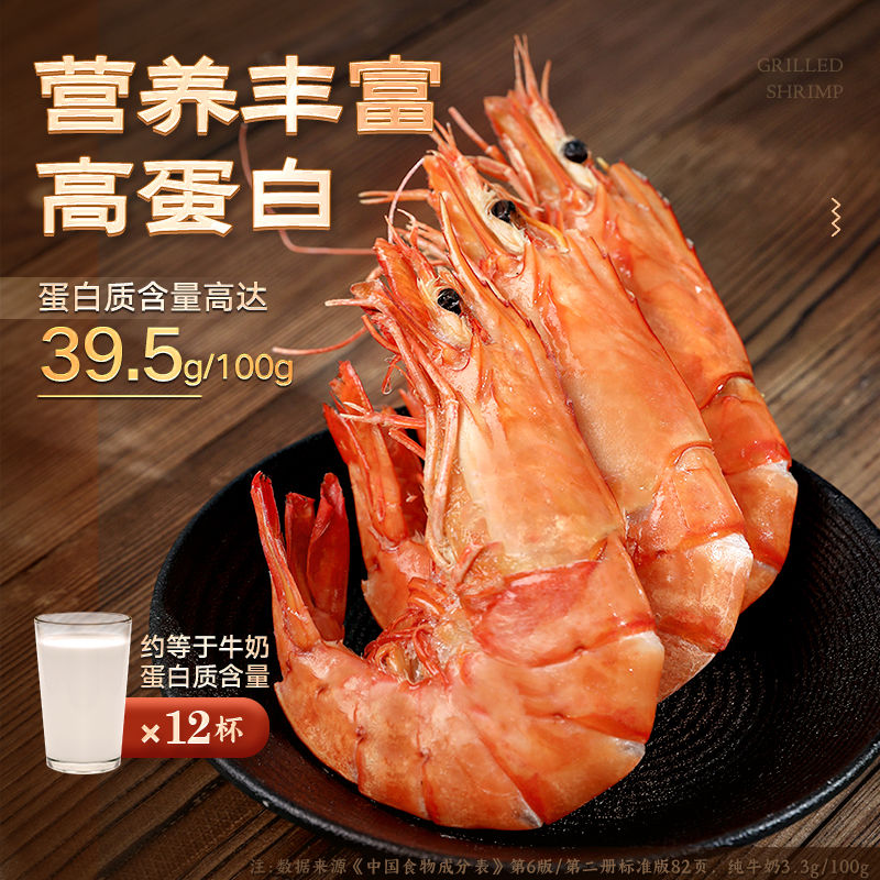 渔寻季开袋即食烤虾低脂孕妇休闲零食虾干海鲜干货250g烤对虾大号