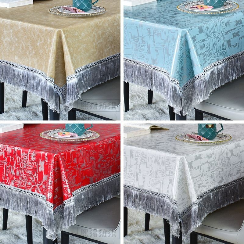 桌布防水防油免洗防烫长方形餐桌布茶几垫塑料台布套客厅烫金桌布