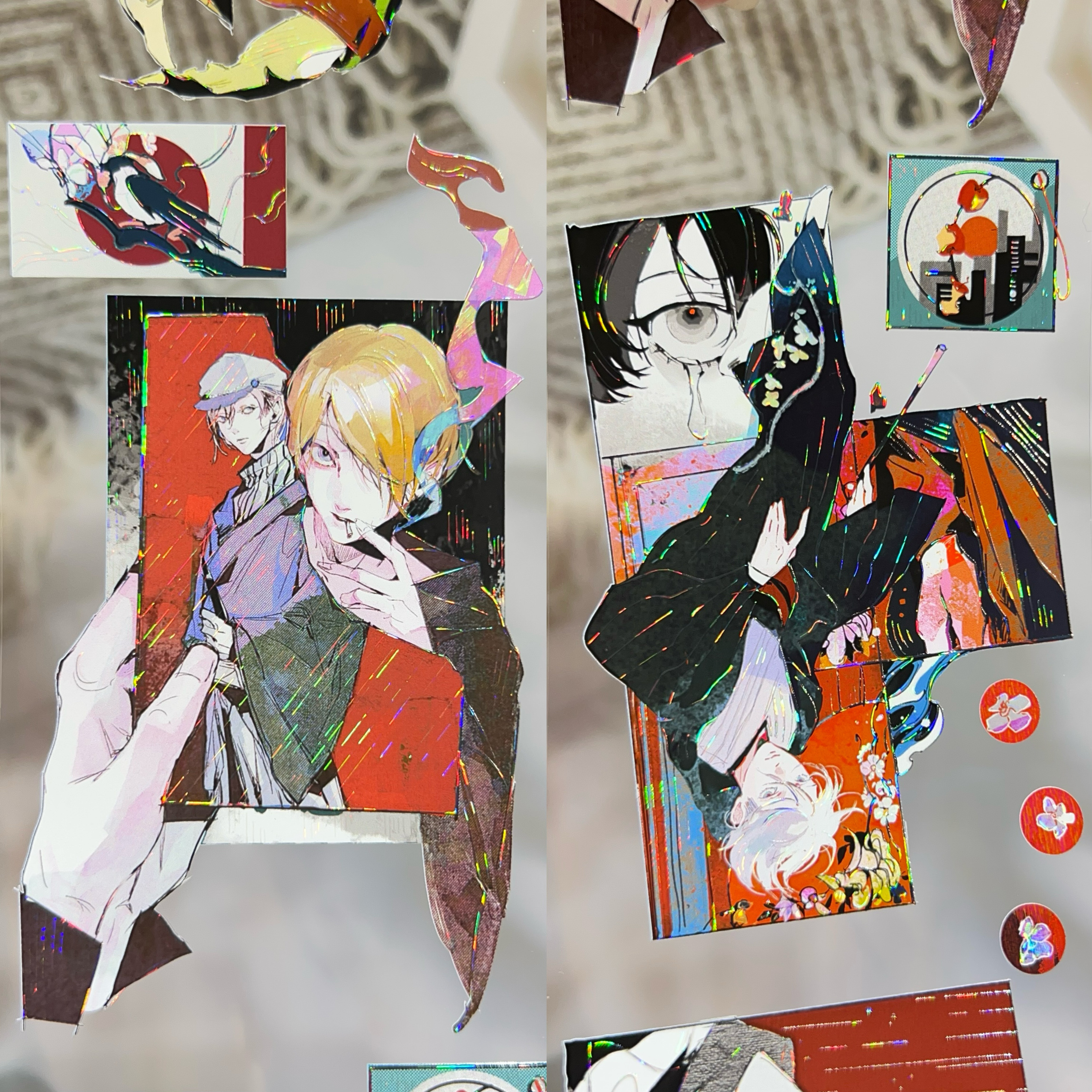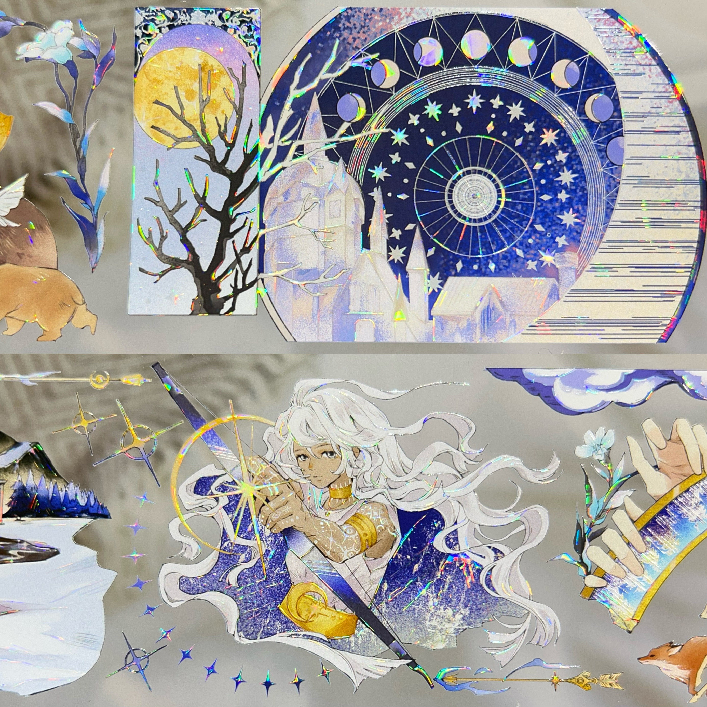 Wines分装手账胶带昔夜余暮镜语星缘月辉染昼人物流麻咕卡素材