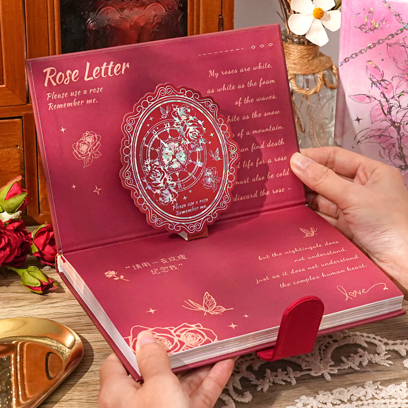 玫瑰来信立体扉页手账本笔记本子儿童女孩卡通磁扣记事本新款玫瑰秘境系列复古文艺全彩内页网红高颜值学生