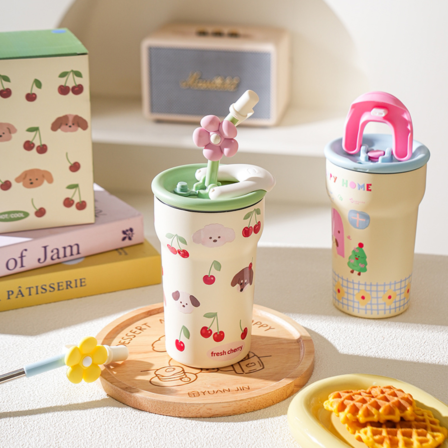 舍里316不锈钢保温杯吸管杯可爱大容量咖啡杯女生保冷水杯冰霸杯