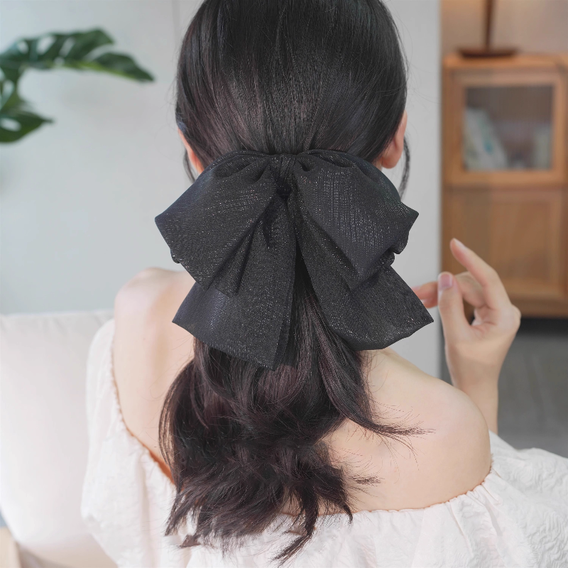 法式温柔气质黑色超大号蝴蝶结飘带发夹女后脑勺抓夹发卡头饰夹子