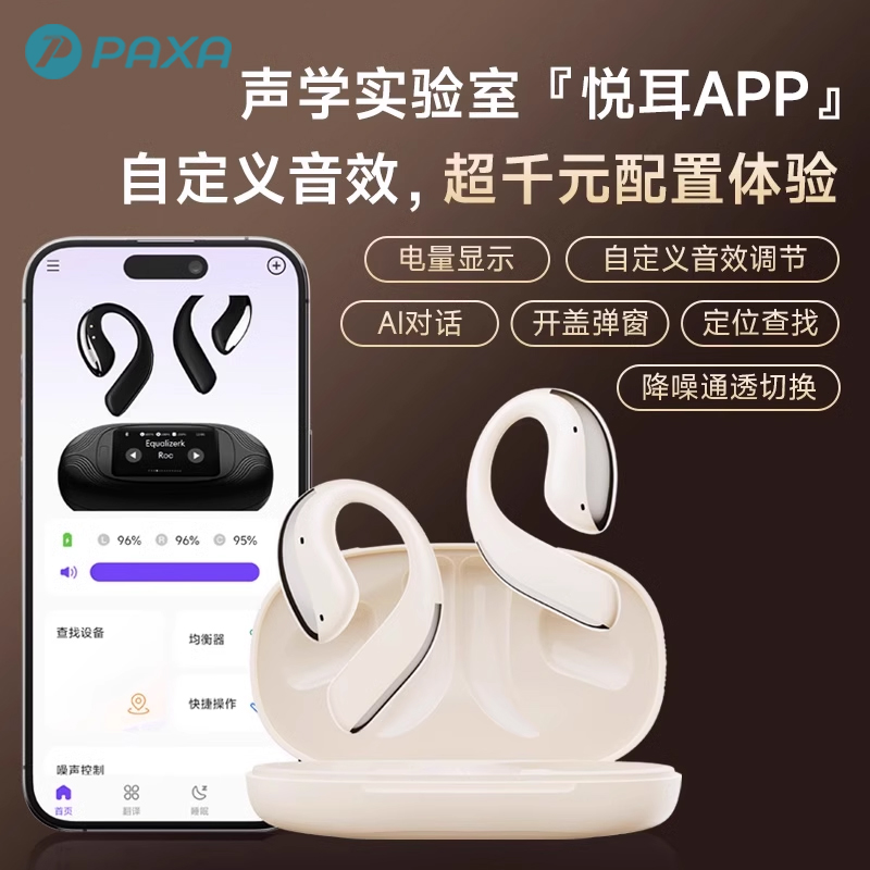 Paxa派可夏智能AI蓝牙不入耳机挂耳同声听译实时翻译会仪助手开放