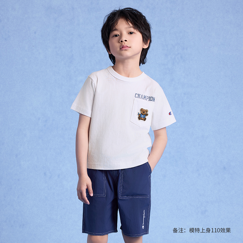 Champion冠军儿童装25夏季新款男女童斜口袋卡通柔软日常短袖T恤