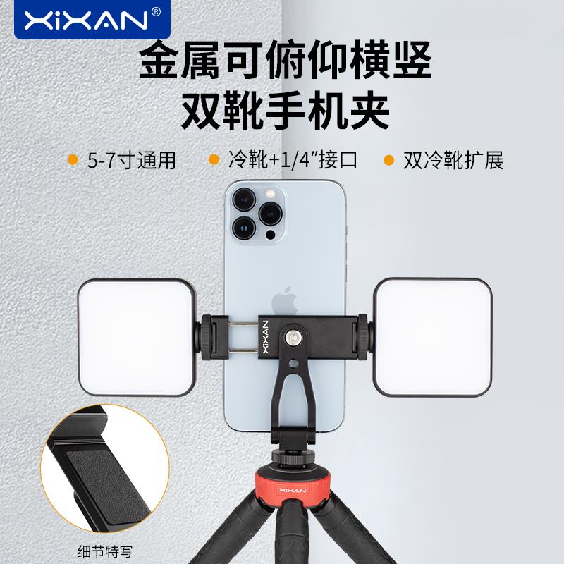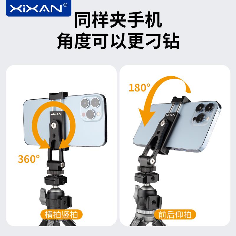 Xixan PH60金属手机夹热靴口相机手机固定三脚架多功能横竖拍夹子
