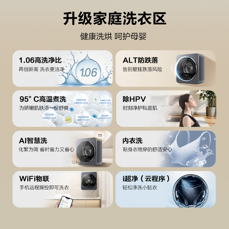 [以旧换新]海尔壁挂洗衣机3KG小型婴儿童内衣裤全自动防跌落68T