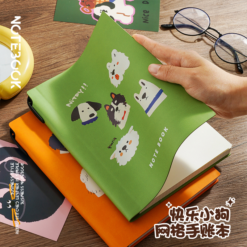 快乐小狗软皮本A5网格本厚记事本笔记本学生方格本格子本工作笔记本子大学生日记本女商务手账本创意文具本子