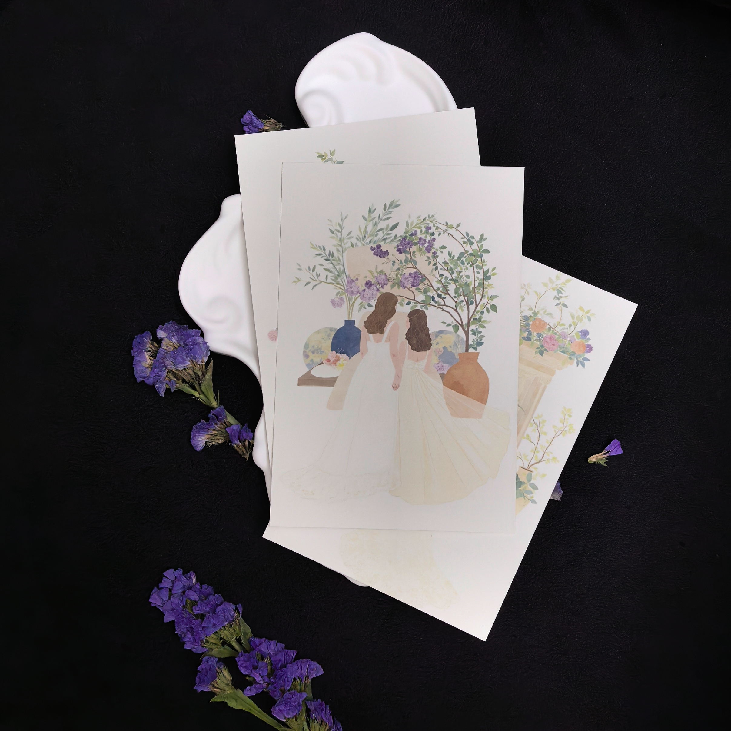 「风月都好看,人间皆浪漫」手写新原创明信片贺卡结婚伴娘卡邀请