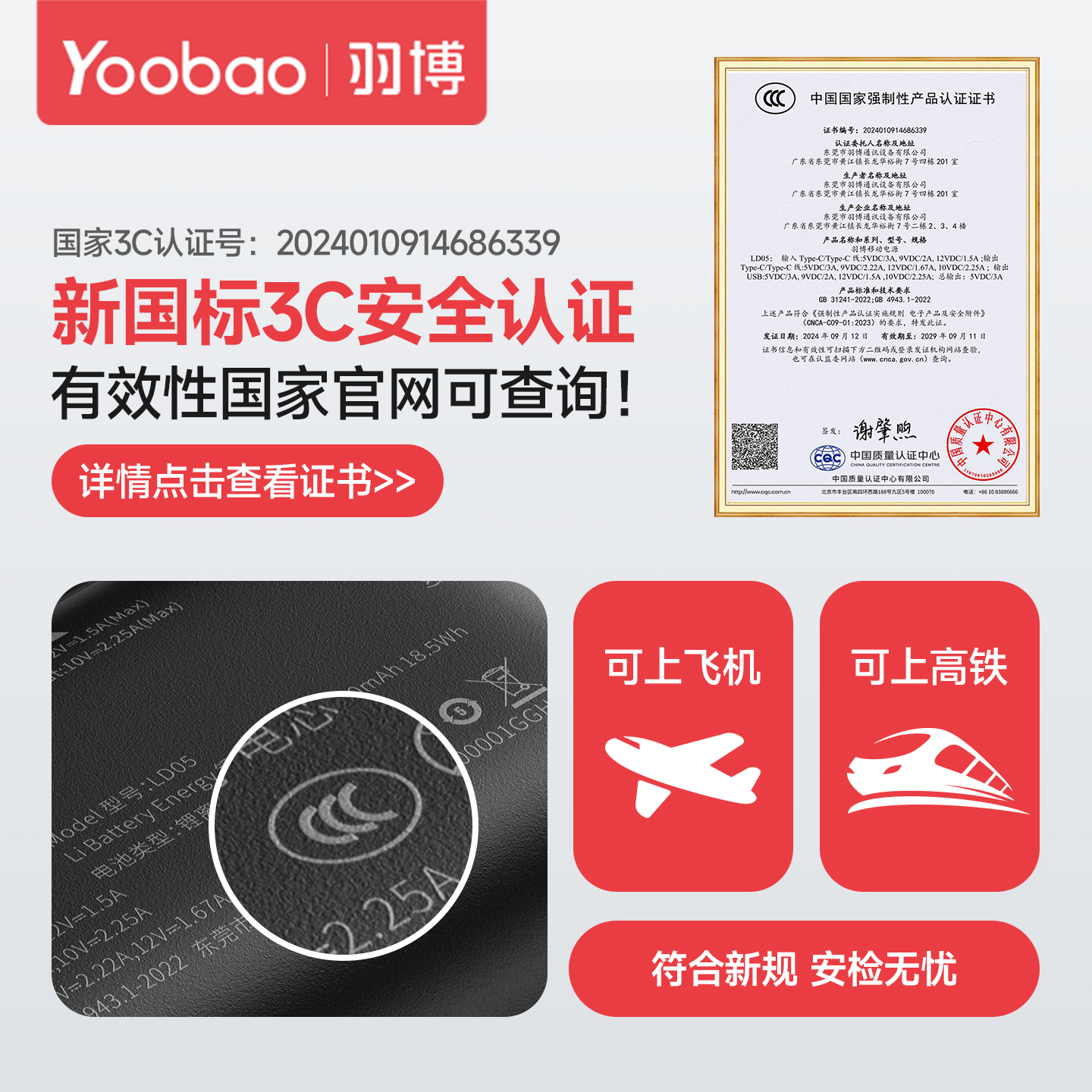 新国标3C认证充电宝羽博胶囊5000毫安超薄小巧便携可上飞机移动电源适用华为小米苹果16快充正品官方旗舰店
