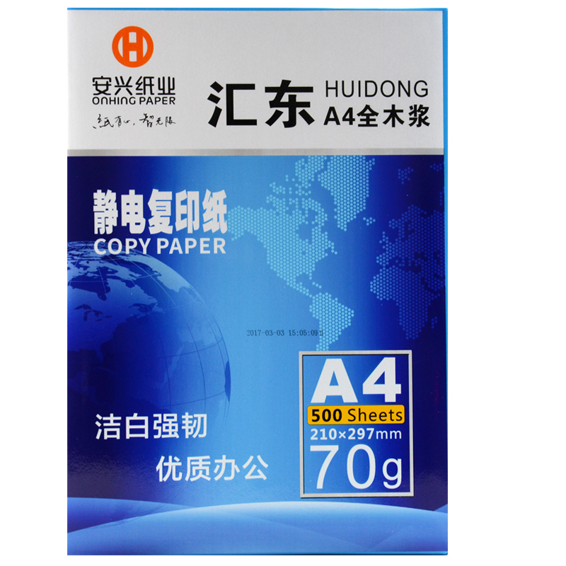 安兴汇东加厚a4纸打印复印纸70g单包足页500张木浆纸整箱A4双面激光打印不卡白纸标书合同纸学生图画纸草稿纸