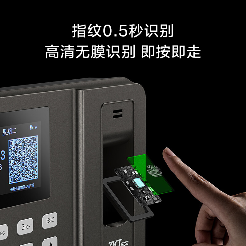 【1200W企业在用】企业微信指纹打卡考勤机员工上下班考勤打卡机签到办公室中控熵基ZKTeco中小公司考勒机