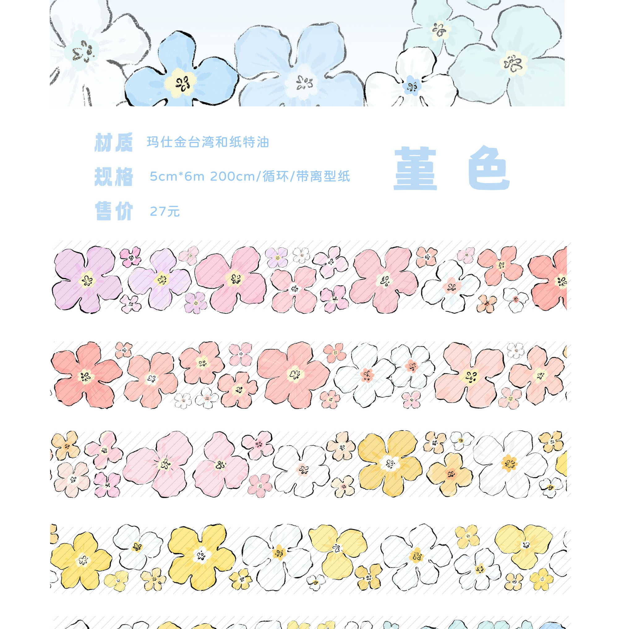 【玛仕金台湾和纸】小雏菊 春犹浅 堇色 手帐和纸胶带