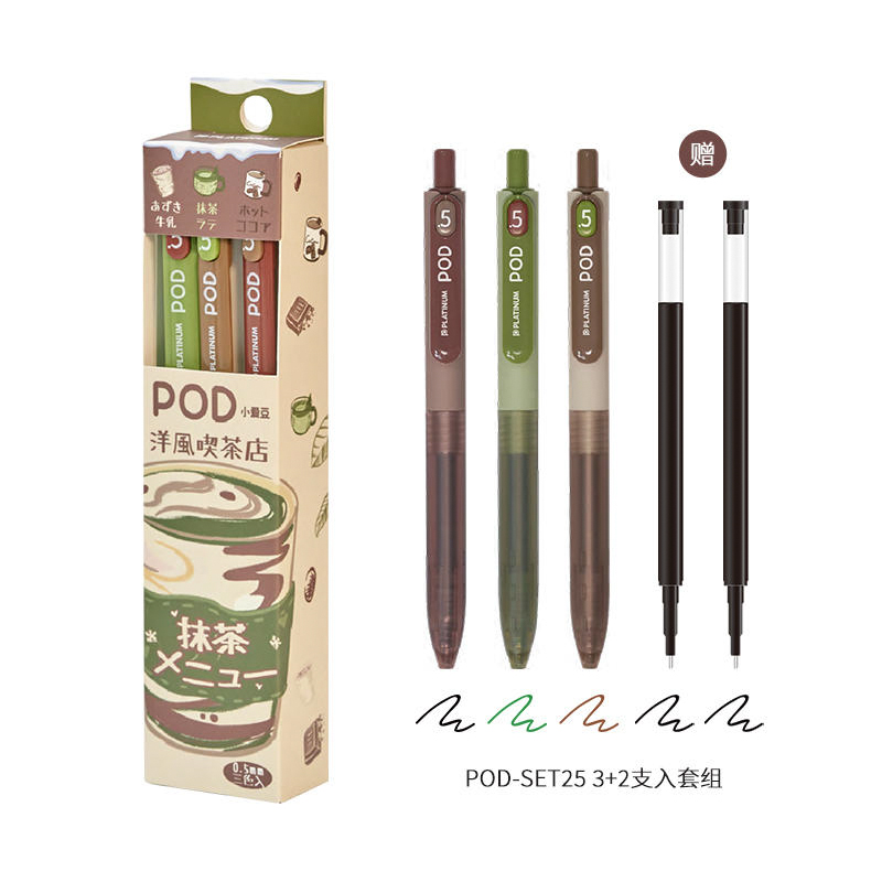 日本PLATINUM白金抹茶特典小爱豆中性笔高颜值洋风茶针管型0.5m