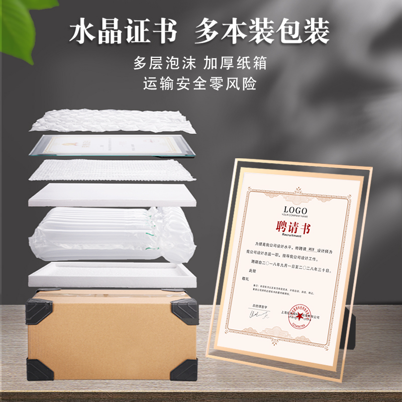 水晶玻璃荣誉证书证件书相框a4获奖证书外壳企业优秀员工奖状展示框聘书专利授权结业证书打印奖牌奖杯定制