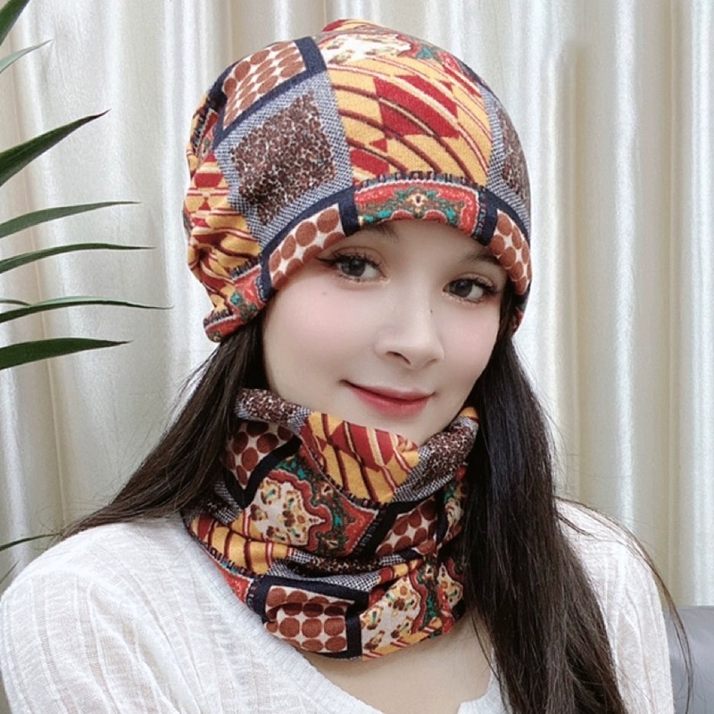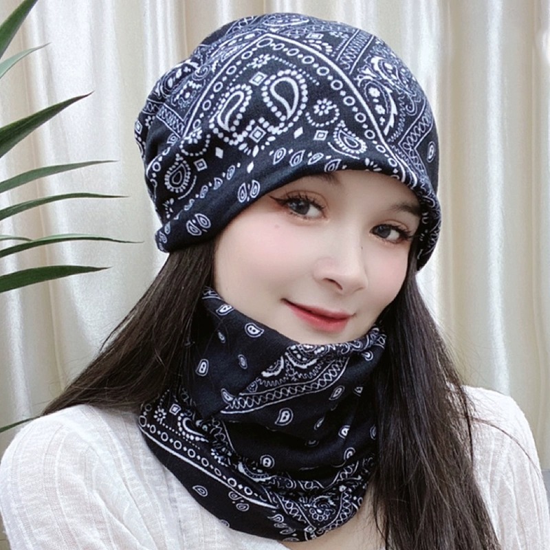 保暖包头帽围脖堆堆帽秋冬护耳骑车防风护颈头套遮白发帽子女扭扭