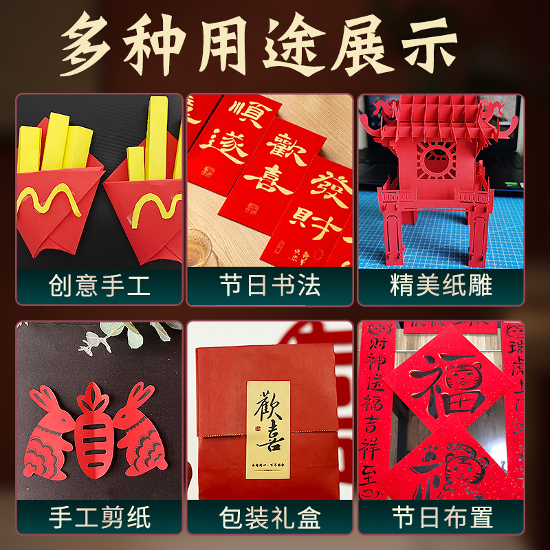 红色卡纸硬中国红卡纸a4手工4开大张4k厚a3大红色折纸8k红纸diy小学生儿童圆形正方形剪纸窗花结婚背景纸打印
