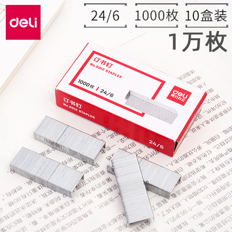 【10盒】得力0012省力订书钉24/6通用型订书针12号加强钉书订书机