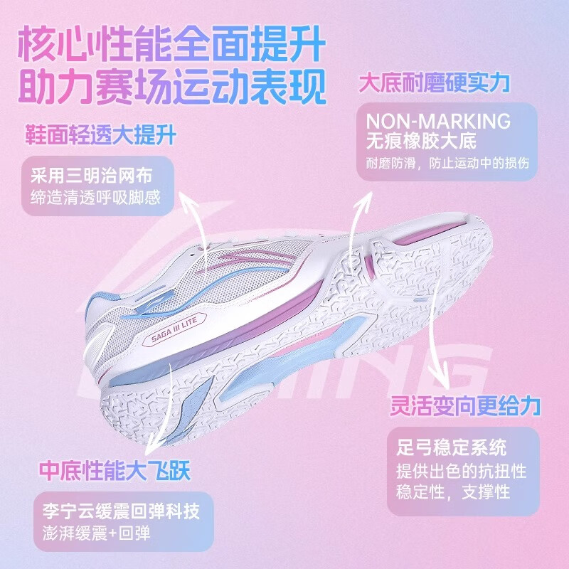 李宁羽毛球鞋 贴地飞行3lite 男女款透气减震防滑耐磨运动训练鞋