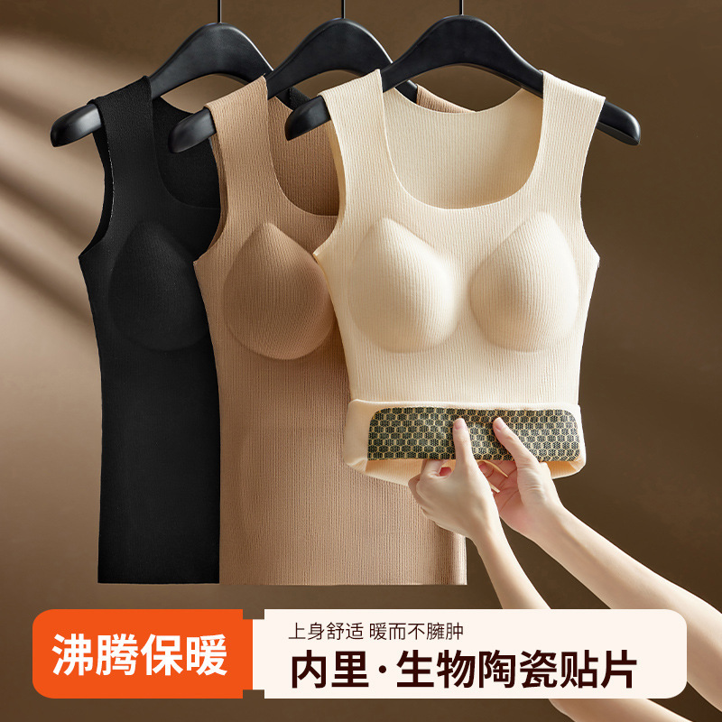 沸腾贴片贝壳杯固定胸垫保暖背心加绒加厚秋冬无痕可机洗保暖内衣