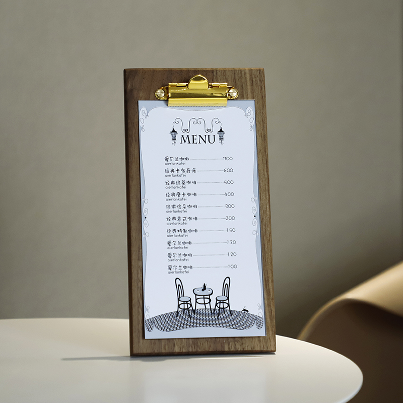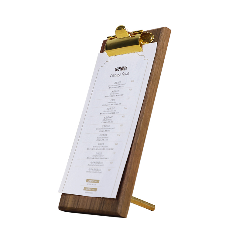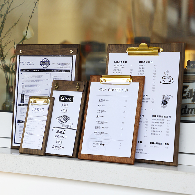 菜单夹胡桃木板夹日式实木质收银夹餐厅咖啡菜单板黄铜夹板展示牌
