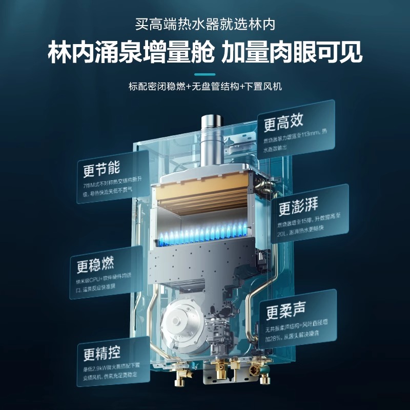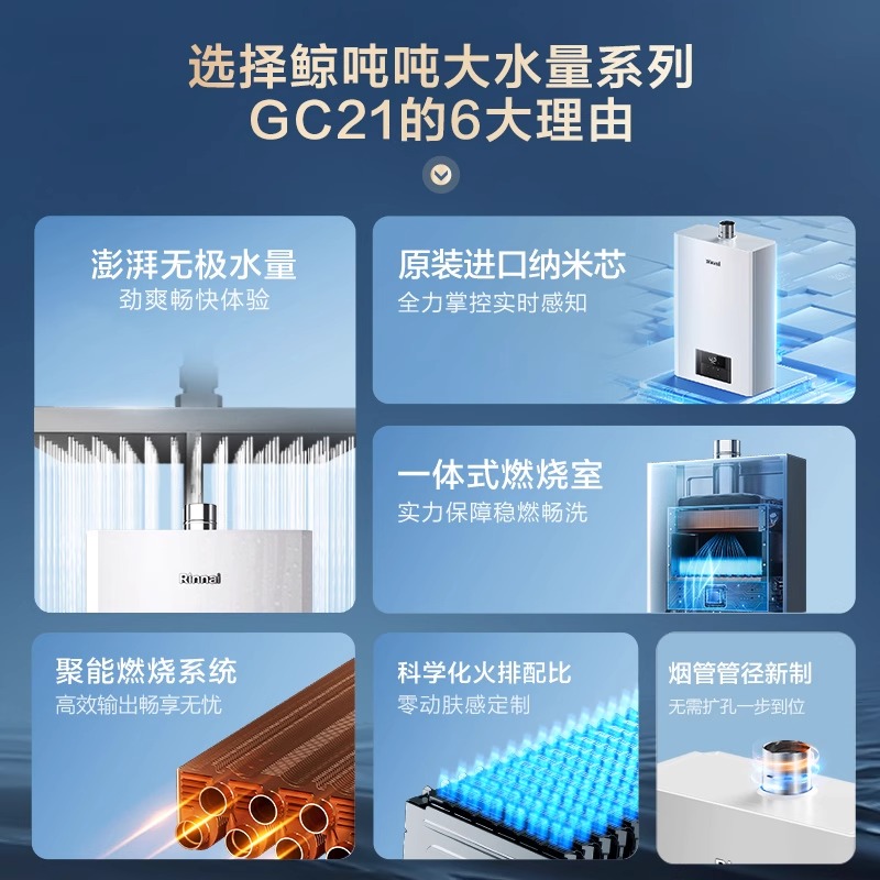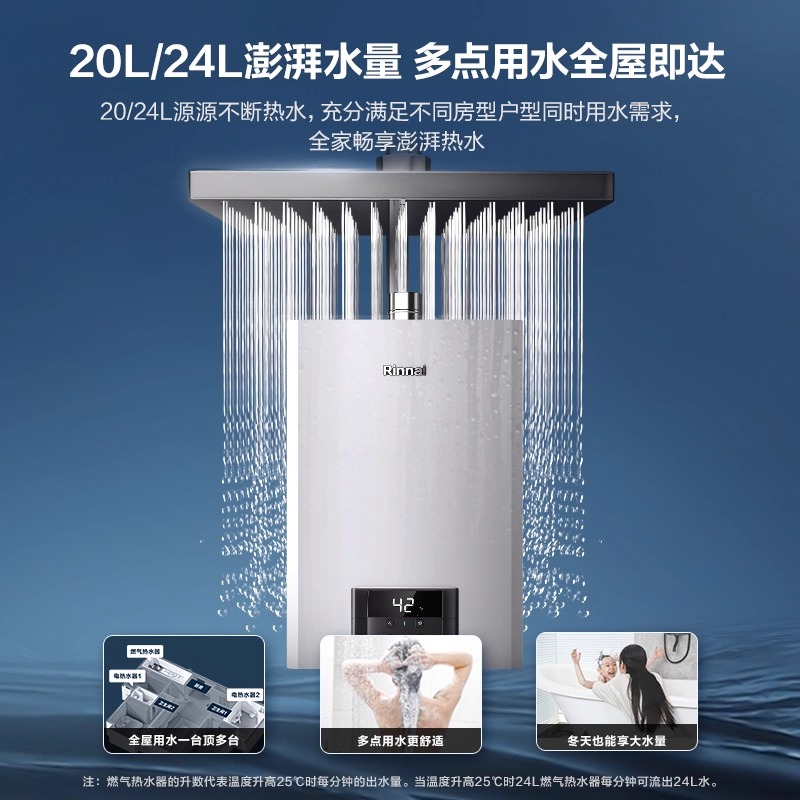 林内鲸吨吨20升燃气热水器GT11智慧恒温GC21小蛮腰大水量静音24升