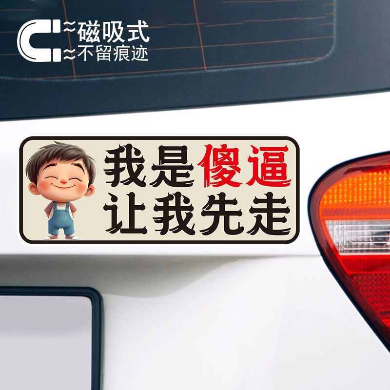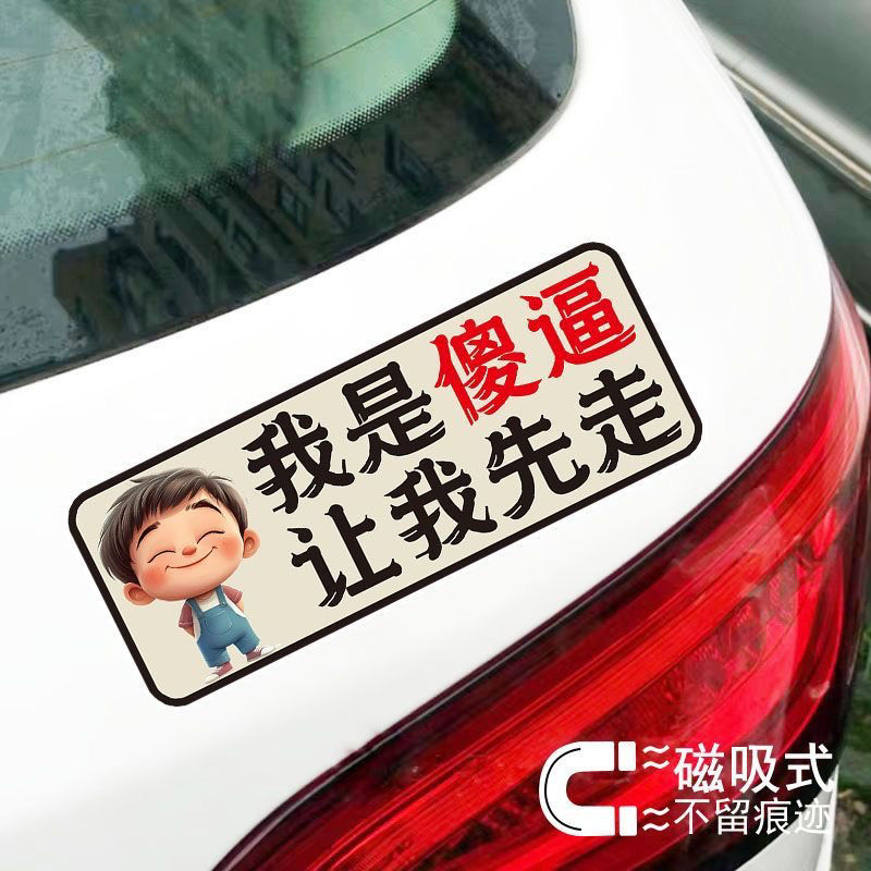 汽车电动车个性文字我是sb让我先走防水防晒搞笑贴网红磁吸贴纸