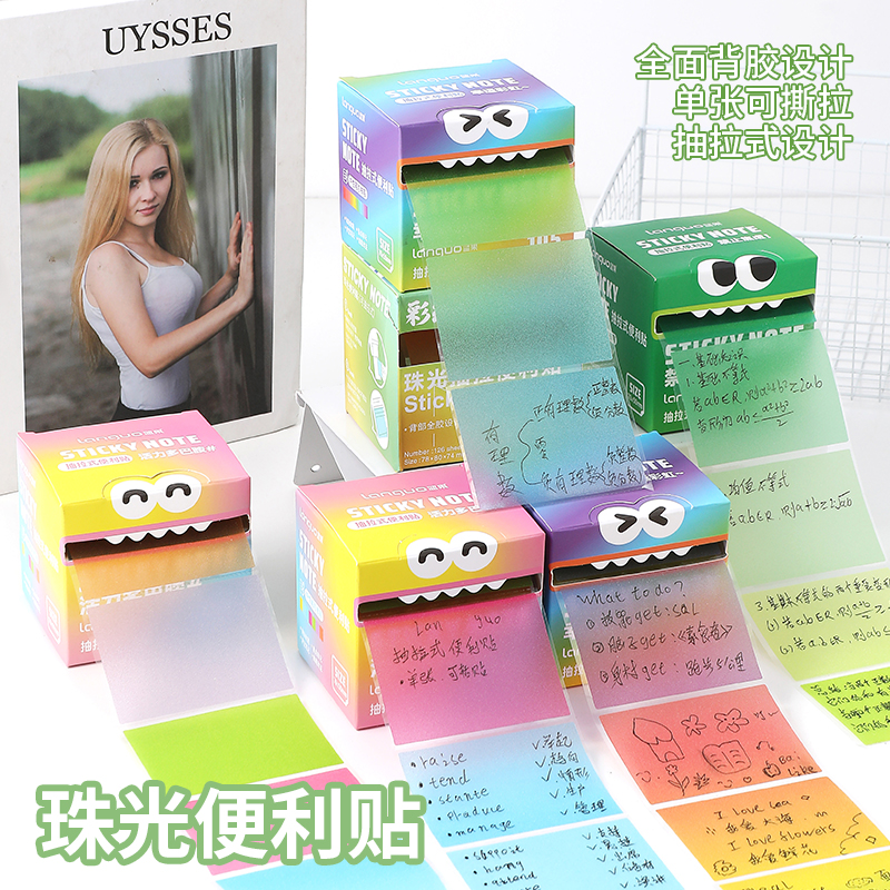 可抽拉便利贴多巴胺色多功能学习便签珠光透明便签本