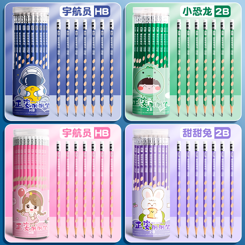 真彩洞洞铅笔小学生专用一年级正姿洞洞笔幼儿园铅笔初学者hb练字纠正握笔姿势2b二三年级矫正2比带橡皮擦头