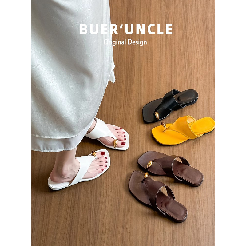 羊皮版~法式方头套趾人字拖鞋女夏季外穿配裙子度假风厚底凉拖