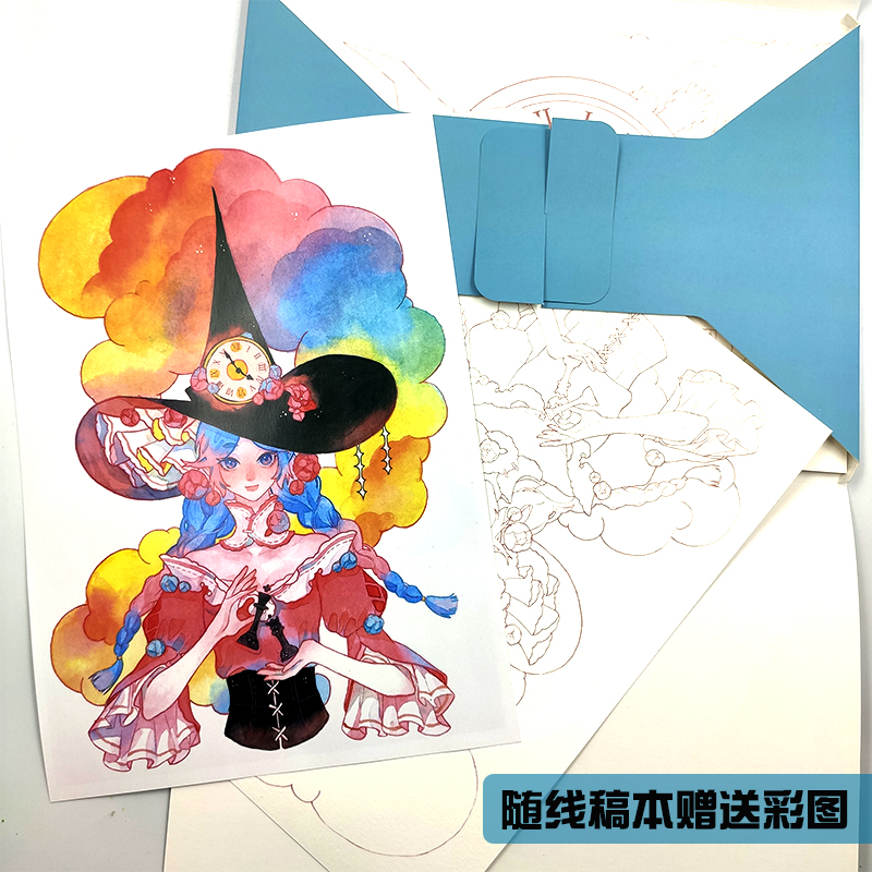 宝虹300g棉浆纸水彩线稿本颜料填色临摹练习新手零基础初学者上色涂色动漫古风人物风景填画素材手绘画集绘本