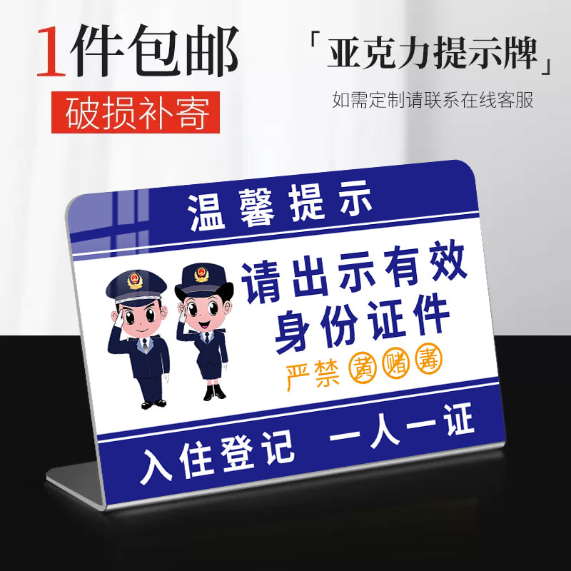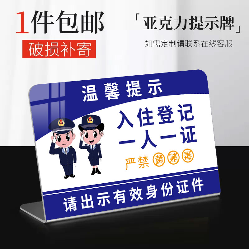 未成年人入住五必须提示牌立牌入登记一人一证告示牌桌牌酒店宾馆民俗收银台指示牌入住须知亚克力标识牌定制